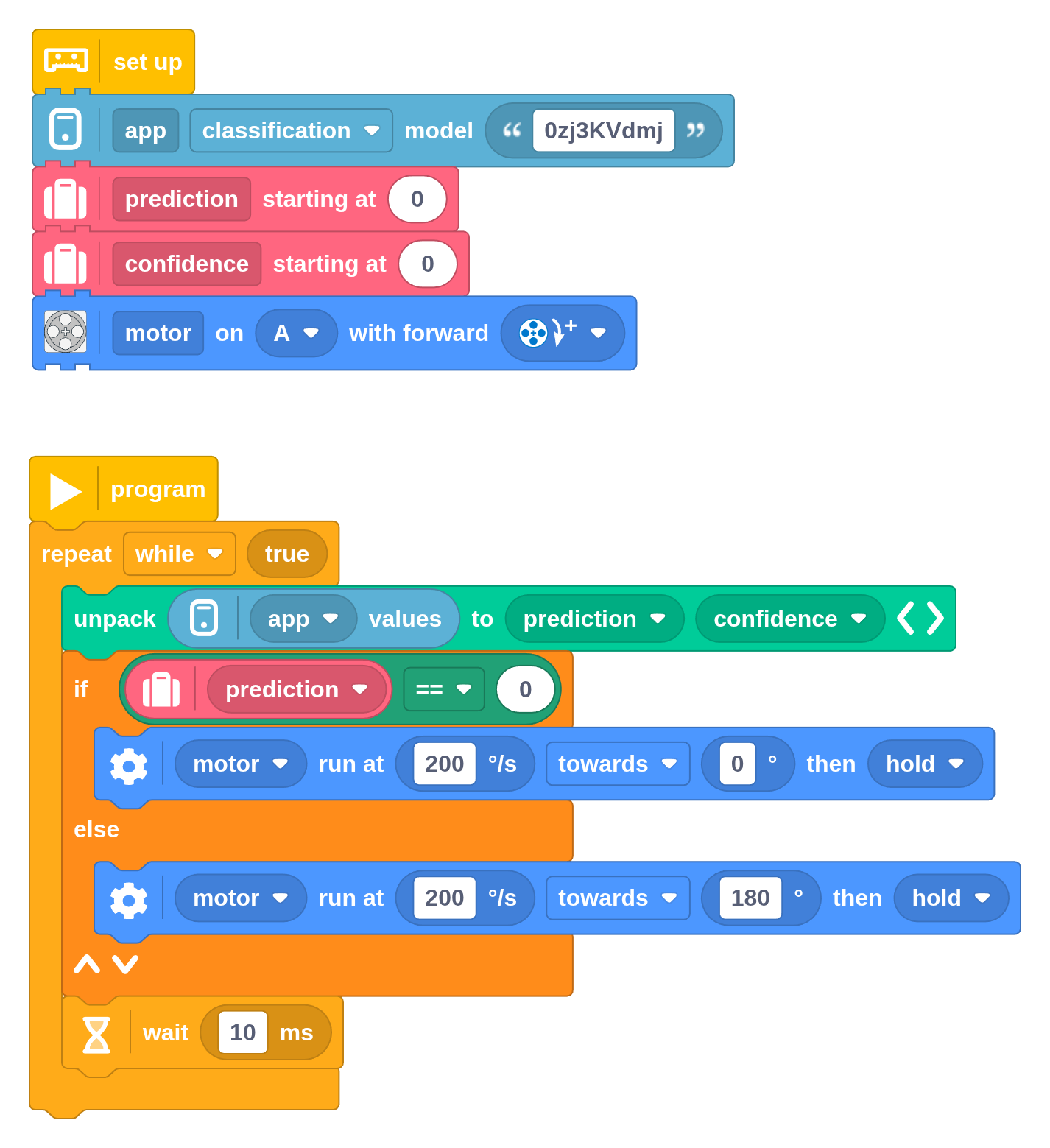 On your phone, go to pybricks.com/smart and choose the classification example. Connect it to your hub as before and run the following example.